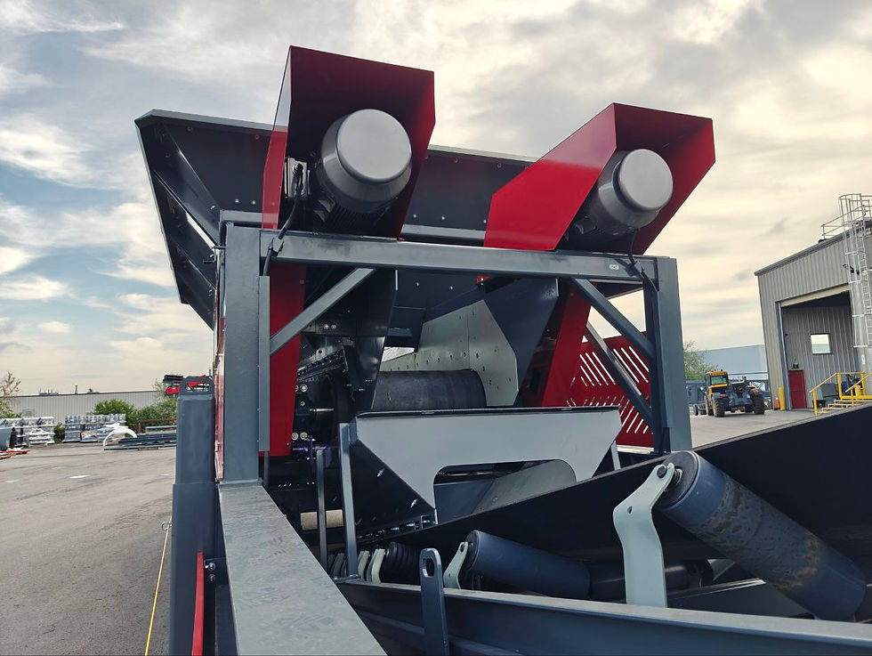 Versatile in design with adjustable transfer conveyor height and removable grizzly bars.